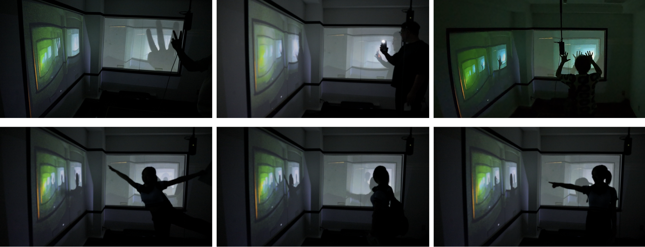 Visitors typically begin by testing the relationship between their movements and the delayed projections. Observations showed behaviors such as synchronized gestures, playful performances, or attempts to communicate with earlier versions of themselves.